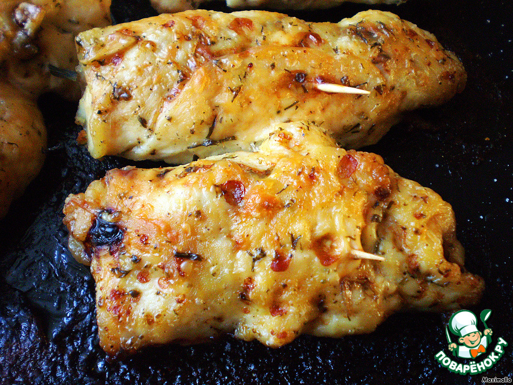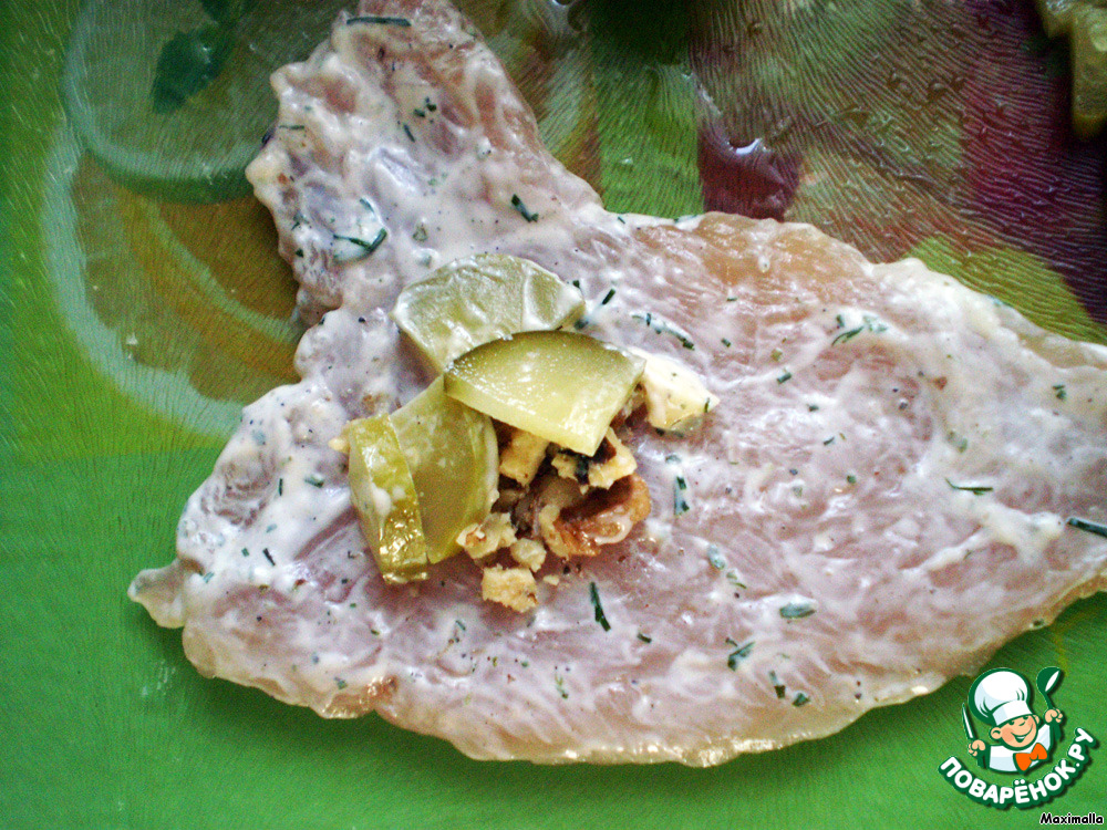 Рулетики из куриного филе с орехово-огуречной начинкой