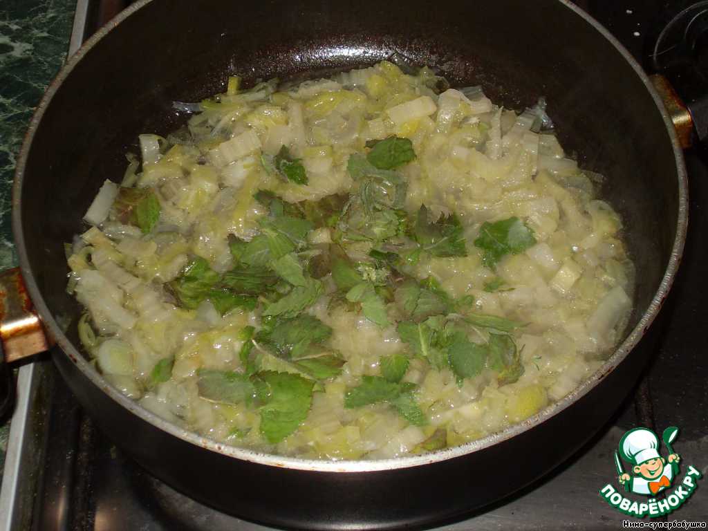 С веточек мяты оборвать листики, порвать их и добавить в сотейник. Потушить еще пару минут.