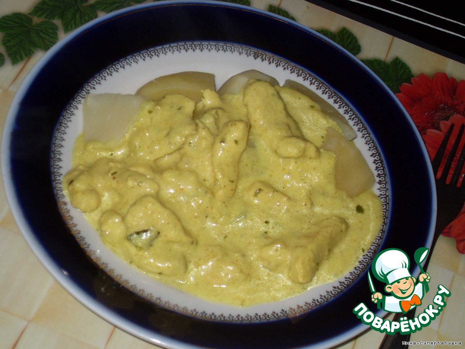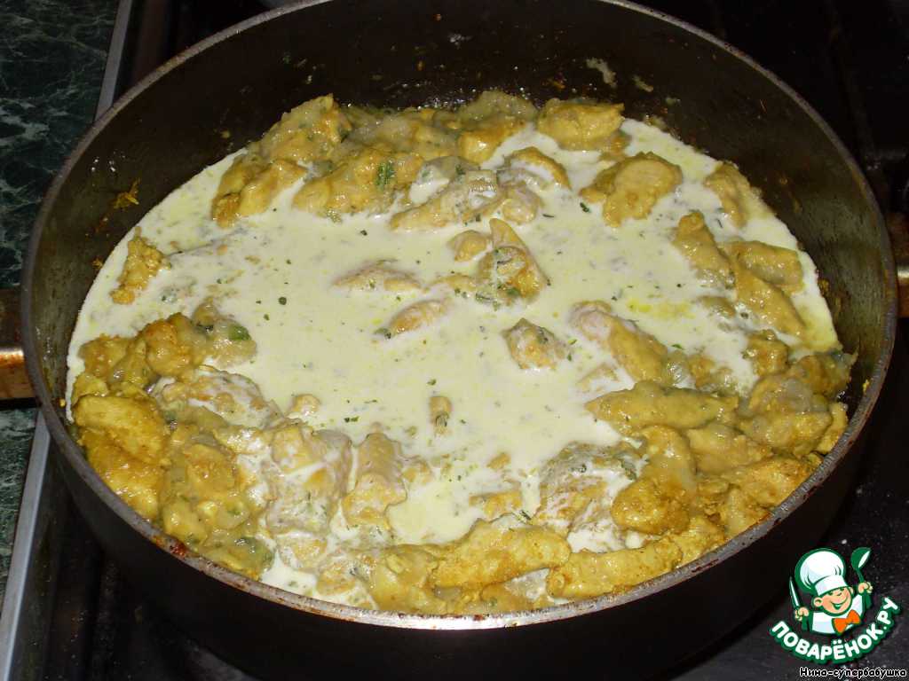 | Решила на ужин потушить куриную грудку в сливках. Дальше весь процесс шел по принципу: "А давай еще это закину... а еще вот это завалялось, давай тоже забабахаю... " Результат приятно порадовал, соус получился просто изумительным! |