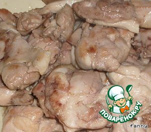 Куриные бедра освободить от кожи и костей, разрезать на 4 части. Грудинку нарезать небольшими кубиками.