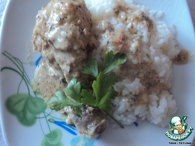Тушим под крышкой на среднем огне, периодически переворачивая и поливая соусом, до готовности. Добавить муку, размешать, дать постоять 5 минут и можно подавать.