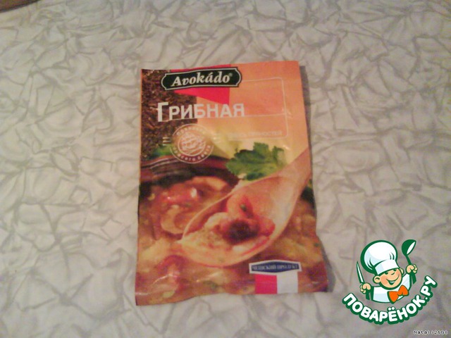 Такую грибную приправу использовала я. Можно использовать другую грибную приправу или измельченные высушенные шампиньоны.