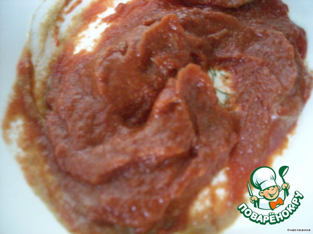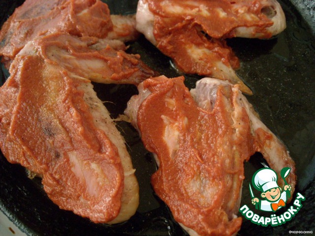 Затем смешивать томатную пасту и соус, вынуть из духовки крылышки, снять фольгу, смазать соусом, и запечь до готовности.