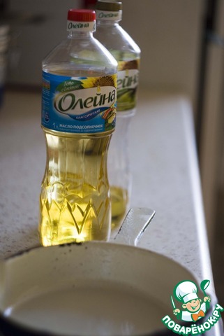 Поставьте вариться очищенный картофель (посолите). Разогрейте в глубокой сковороде растительное масло. У меня здесь половинная порция и сковородка маленькая.