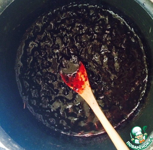 Добавьте пюрированную чернику. И! Любители кисло-сладкого привкуса могут также добавить полчайной ложки любого темного варенья. Провариваем до загустения несколько минут. Огонь - ниже среднего. Выключаем и даем соусу остыть.