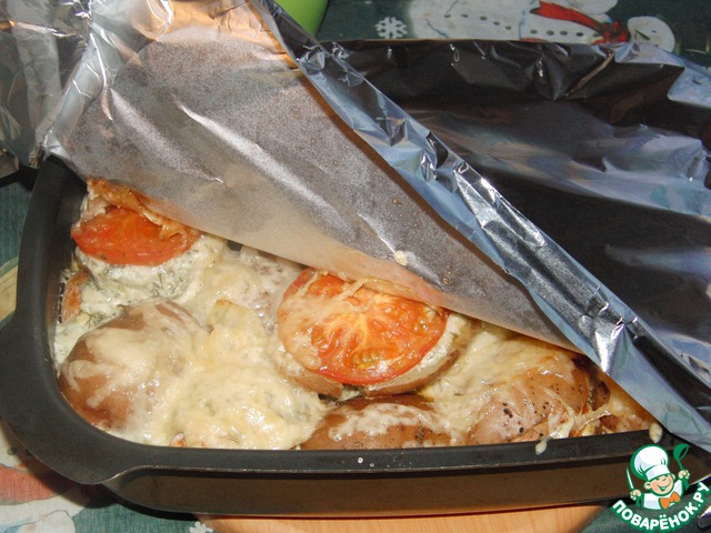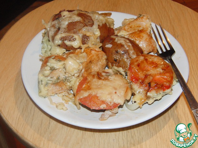 | Это блюдо я делаю каждый раз, когда хочу порадовать своих близких :) Если вдруг у кого-то что-то есть похожее, заранее извиняйте ))) Запеченный картофель с сыром и помидоркой под боком у куриной грудки! |