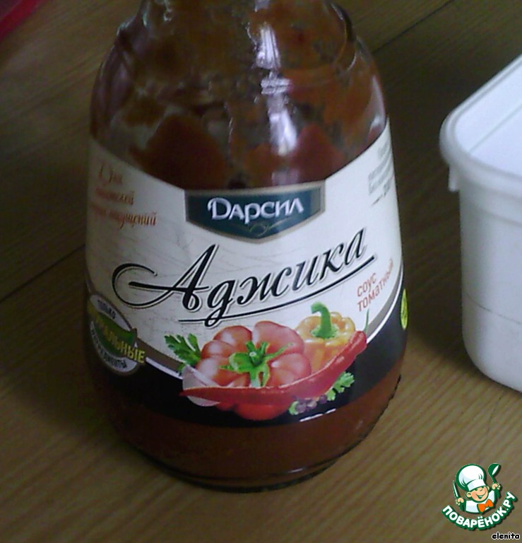 Аджика должна быть качественная. Никакого крахмала, глютамата натрия. Моя - на этом фото.
