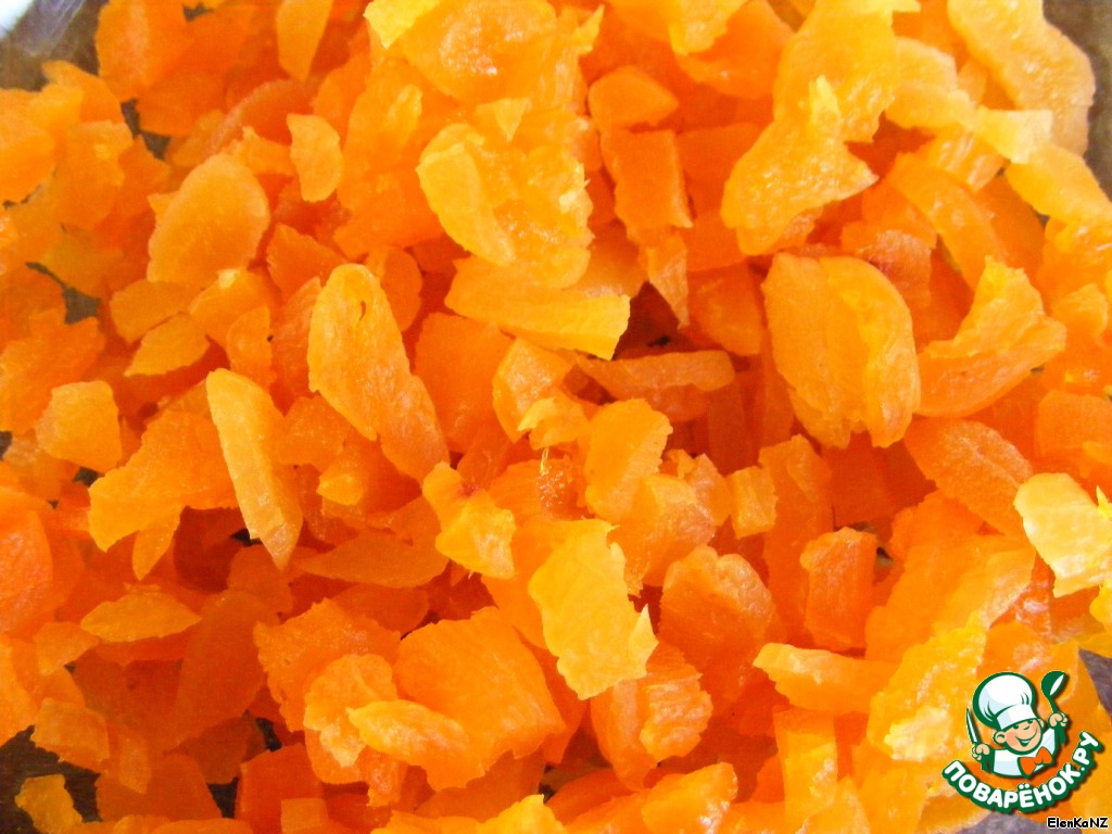 Мелко режем курагу. Я не замачивала, курага очень сочная.