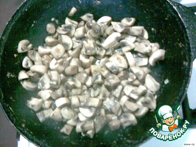 Шампиньоны обжариваем почти до полного испарения жидкости
