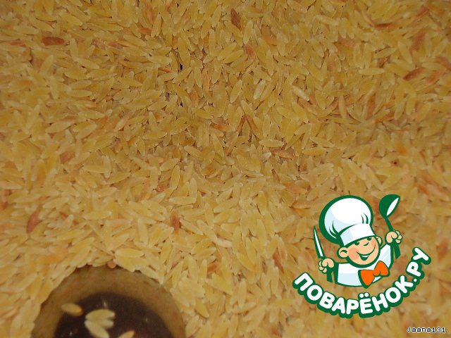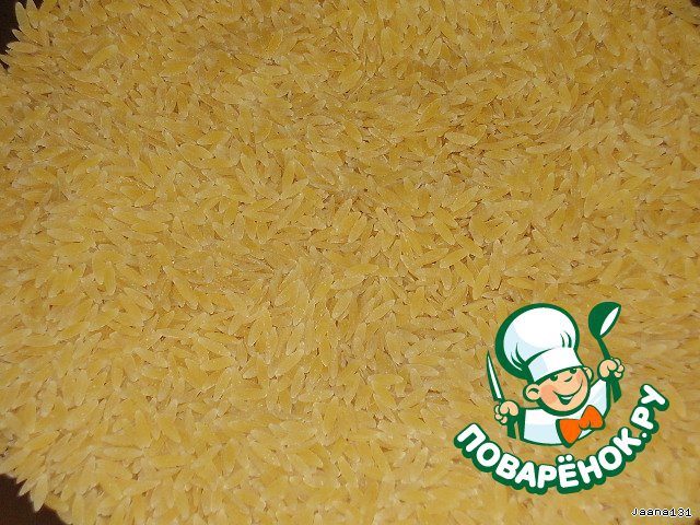 Они похожи на рис. Но это все таки макароны. Высыпать макароны на сковороду .....