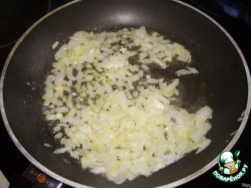 Лук мелко рубим и обжариваем на сливочном масле.