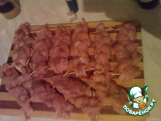 Из мяса достаем зубочистки и делаем шалаш: 3 косички,