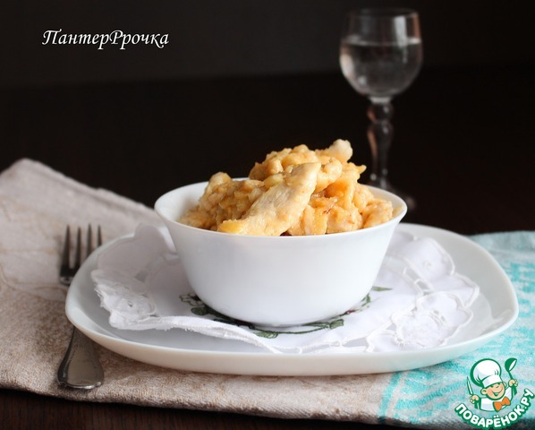 Перец достать, он нам больше не понадобится. Добавить нарезанное филе и обжаривать до готовности. У меня это заняло 3 минуты.