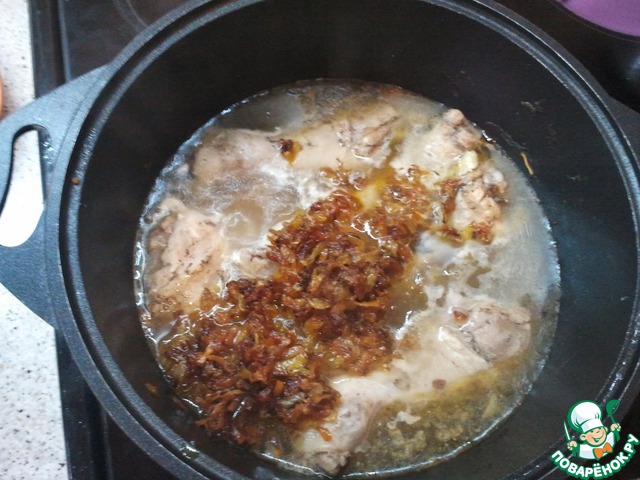 Добавляем жареную морковь с луком в кострюлю
