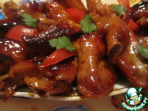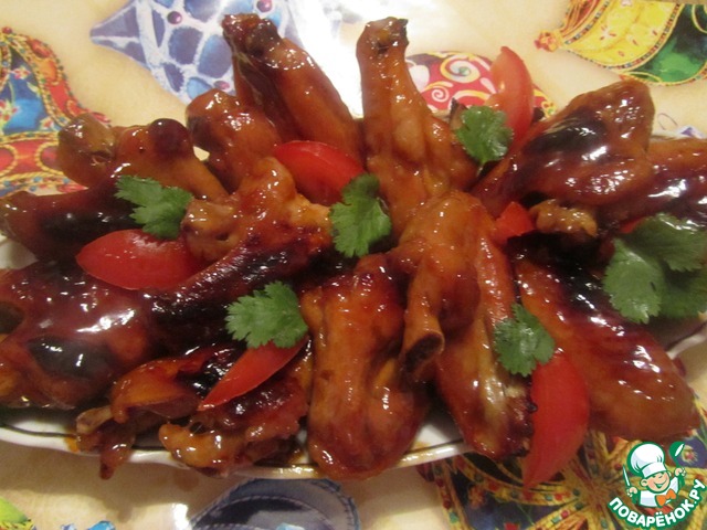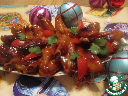 | Их так и хочется съесть!!! Нежные, сочные крылышки с пикантным сладковато - острым вкусом. Очень даже кстати подать на Новогодний стол с овощным легким гарниром. Попробуйте. |