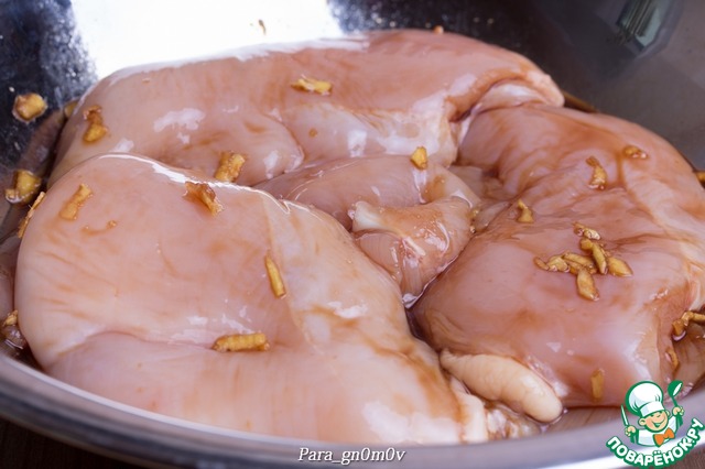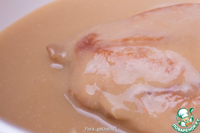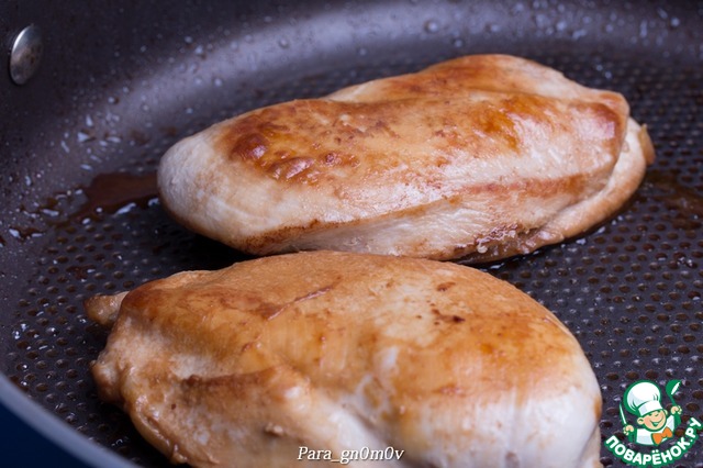 5. Для второго варианта смешать ингредиенты в двойном количестве, выложить в соус грудку и проварить в соусе несколько минут (3-5). Затем вынуть грудку из соуса и загустить его при необходимости с помощью крахмала, как описано выше. В обоих случаях получается вкусно.
