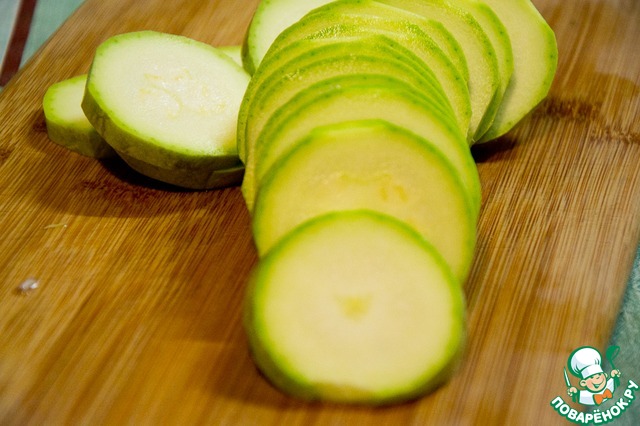 Бедра отделить от костей, мясо нарезать на маленькие кусочки. Лук нарезать четвертинками колец, грибы крупно, кабачок колечками.