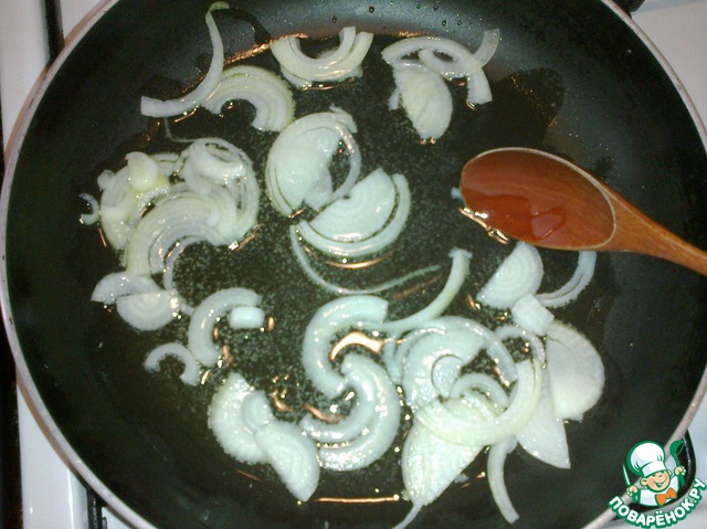 Нарежьте лук полукольцами, чеснок мелко нарежьте, обжарьте в небольшом количестве подсолнечного или оливкового масла.