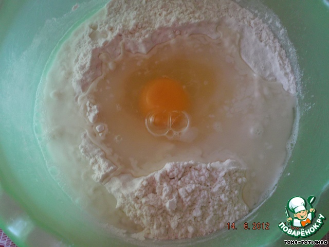 Готовим галушки. Для этого в муку добавляем воду, соль , яйцо и вымешиваем тесто.