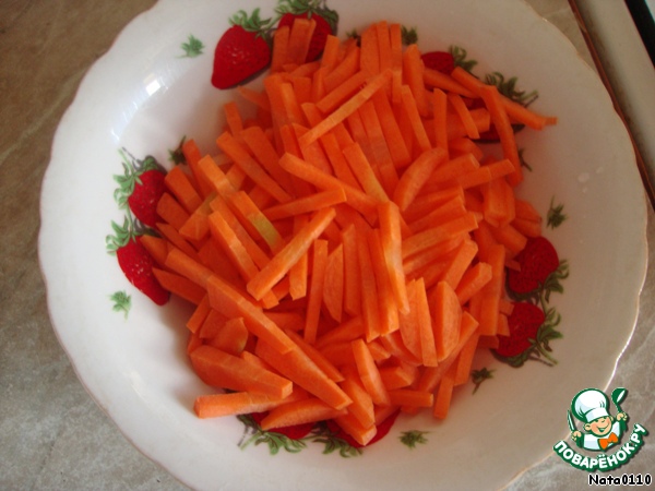 Морковь нарезаем соломкой.