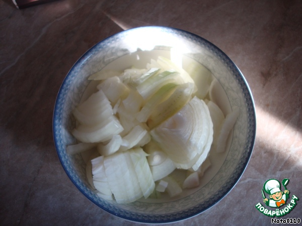 Лук нарезаем полукольцами (либо четвертью).