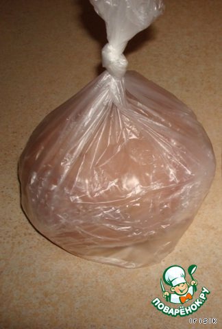 Вынув филе из холодильника, переставляем его в пакет, и плотно завязываем в узел.
