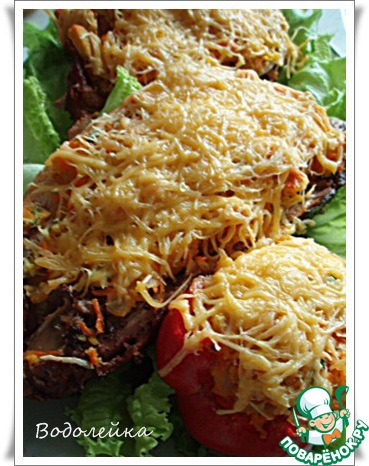 Сверху посыпаем тертым сыром (сыра не жалейте) и запекаем около 10-15 минут. Нам нужно что бы сыр расплавился.