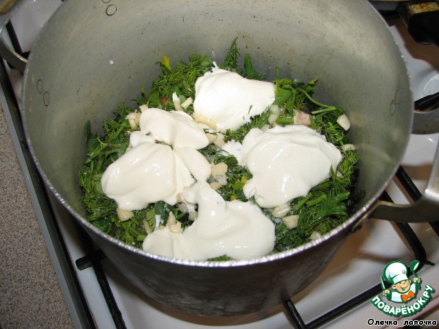 Выложить половину сметаны.
