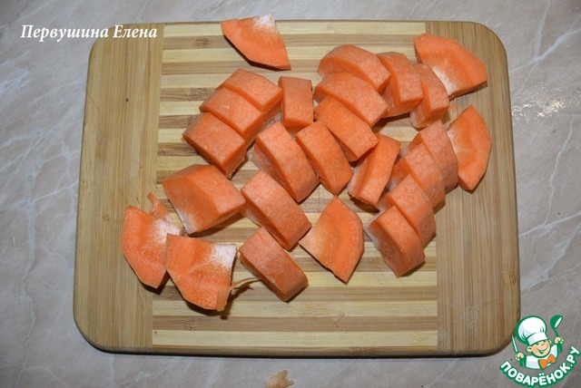Морковь очистить и нарезать крупными кусочками.