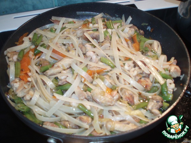 Рисовая лапша с курицей и креветками
