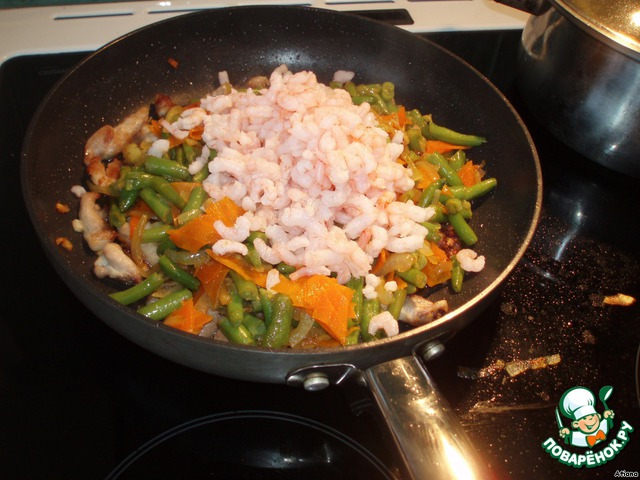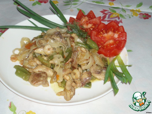 | Любителям рисовой лапши посвящается))) Hеобыкновенное сочетание рисовой лапши, мяса, креветок и овощей. |