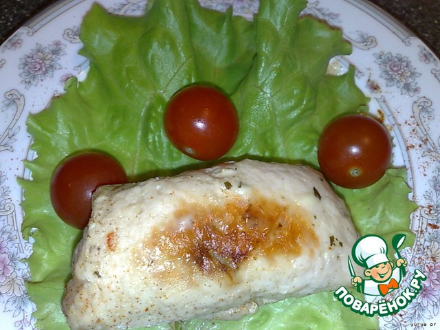 3. На фольгу кладем филе, сверху начинку, порезанный пластинками чесночок (1 /2 шт). Сверху четветую часть сыра.
