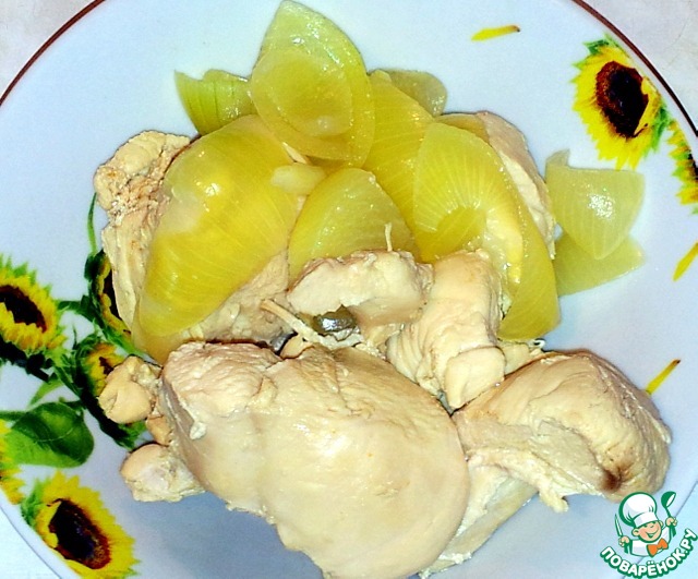 Вареное куриное филе и варенный лук.