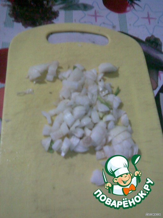 Лук измельчаем и добавляем к мясу, когда оно обжариться со всех сторон.