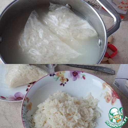 Приготовление риса в варочных пакетихах очень удобно, нужно просто поместить нужное количество в кипящую подсоленную воду. Данный сорт риса варится 30 минут.