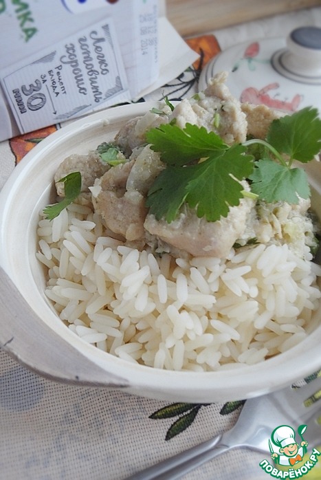 Можно сервировать блюдо. При подаче посыпьте кинзой. Получается очень сочная курочка и вкуснейший соус!
