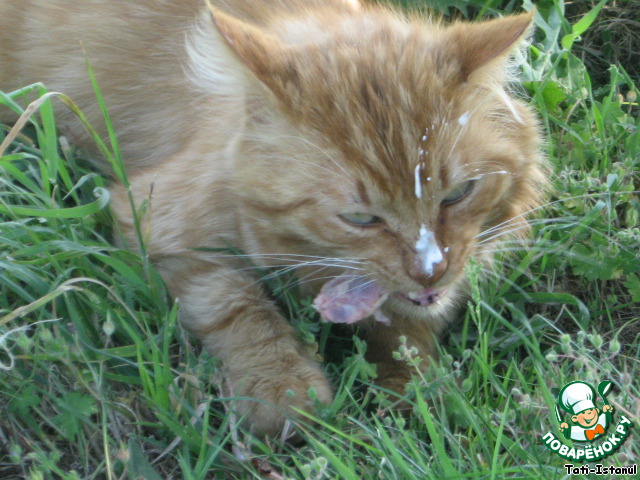И даже соседский котяра пришел на вкусный дымок!! и ему тоже досталось!!:)