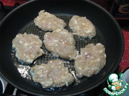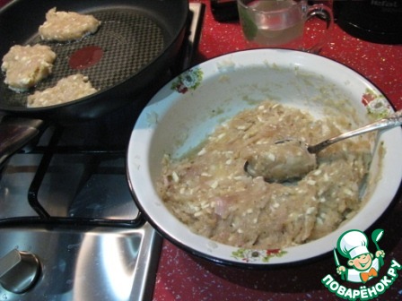 Смешиваем все ингредиенты, придаем форму и выкладываем ложкой, смоченной в холодной воде на разогретую (но не раскаленную!) сковороду.