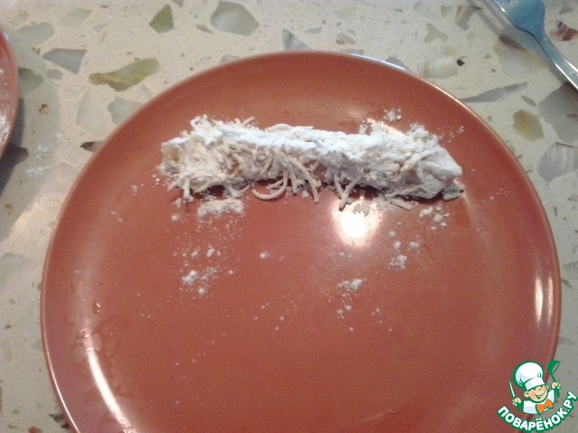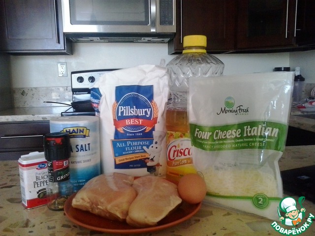берем кусочек курочки, обмакиваем в яйцо затем хорошо панируем сыром и сверху мукой