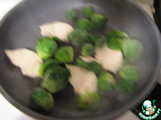 Добавить брюссельскую капусту, потушить еще 5 минут