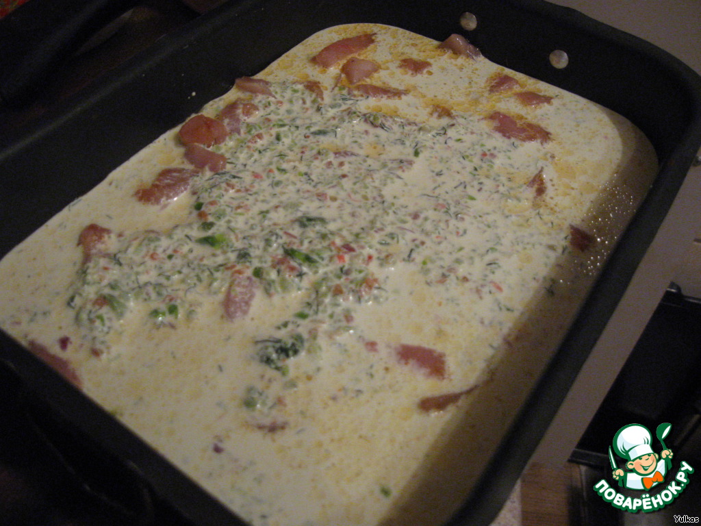 Делаем соус: болгарский перец, лук, чеснок, укроп пропускаем через мясорубку, заливаем сливками и даем немного настояться.