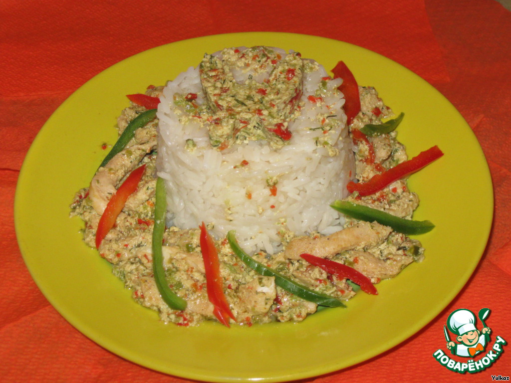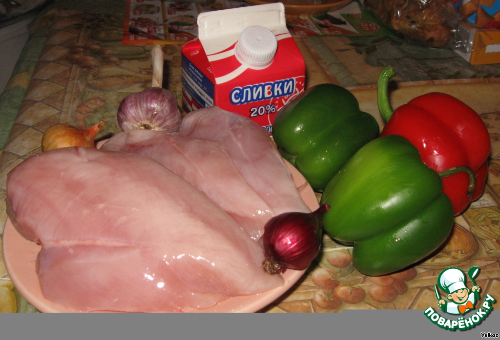 | Рецепт этого блюда был размещeн на сайте в 2008 году пользователем yulia под названием "Грудки в соусе из болгарского перца" и иллюстрирован мной в рамках акции «Раскраски». Готовить блюда из куриной грудки всегда быстро и легко и данный рецепт не исключение! Больше времени ушло на сбор-разбор мясорубки. |