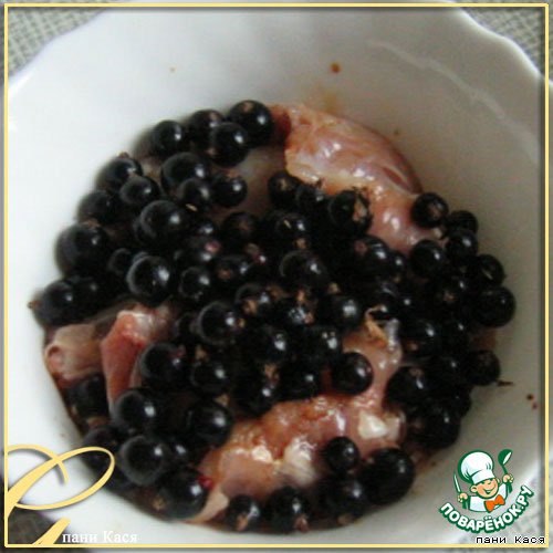 смородину (любую, мелкую, не очень сладкую) моем, перебираем, добавляем к куре