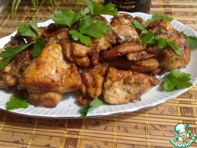 При подаче уложите кусочки курицы на блюдо, полейте соусом. Приятного аппетита!