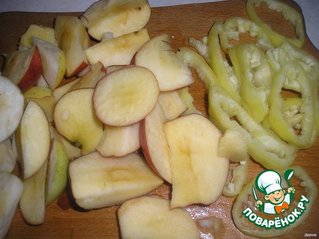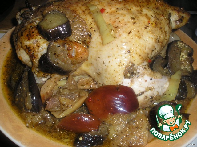 | Красавица-курочка заманит домой даже самого отчаянного гуляку, ну а если муж - редкий семьянин, то уж и подавно. Нежная девочка с яблоками, синенькими и перчиком. |