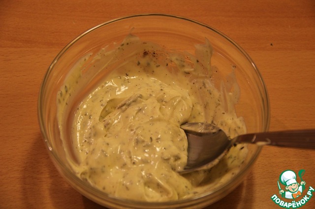Соединяем оставшийся перец+чеснок+майонез +розмарин
