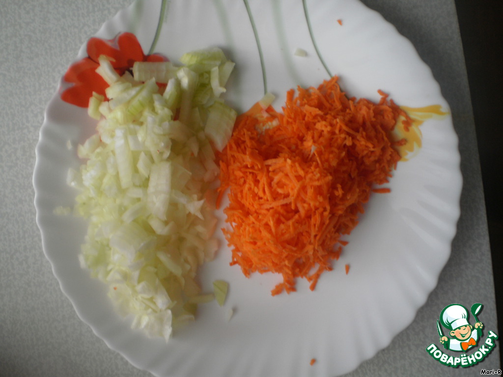 Нарезать лук и натереть морковь, добавить к курице и тушить.