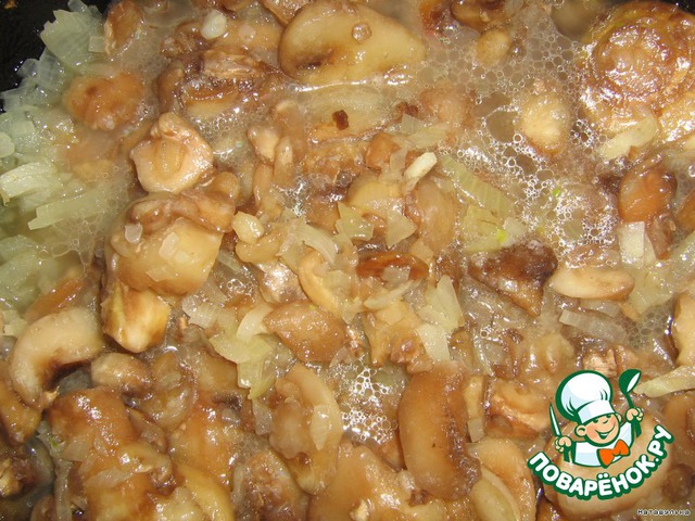 Наливаем масло на незаменимую помощницу на кухне - сковороду Scarlett - тушим до полуготовности грибы и лук.