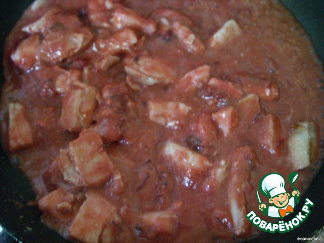 | Белое мясо грудки с пикантным, слегка кисловатым, но очень подходящим сливовым соусом. |