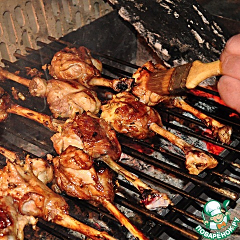 Выкладываем на сильный жар. Решетку предварительно нужно смазать растительным маслом.